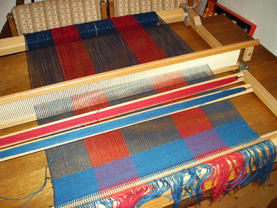 Den Gewichtwebstuhl möchte ich trotzdem nicht aus den Augen verlieren, aber hinsichtlich des doch komfortableren Webens am Trittwebstuhl gebe ich meiner Anna den Vorrang.